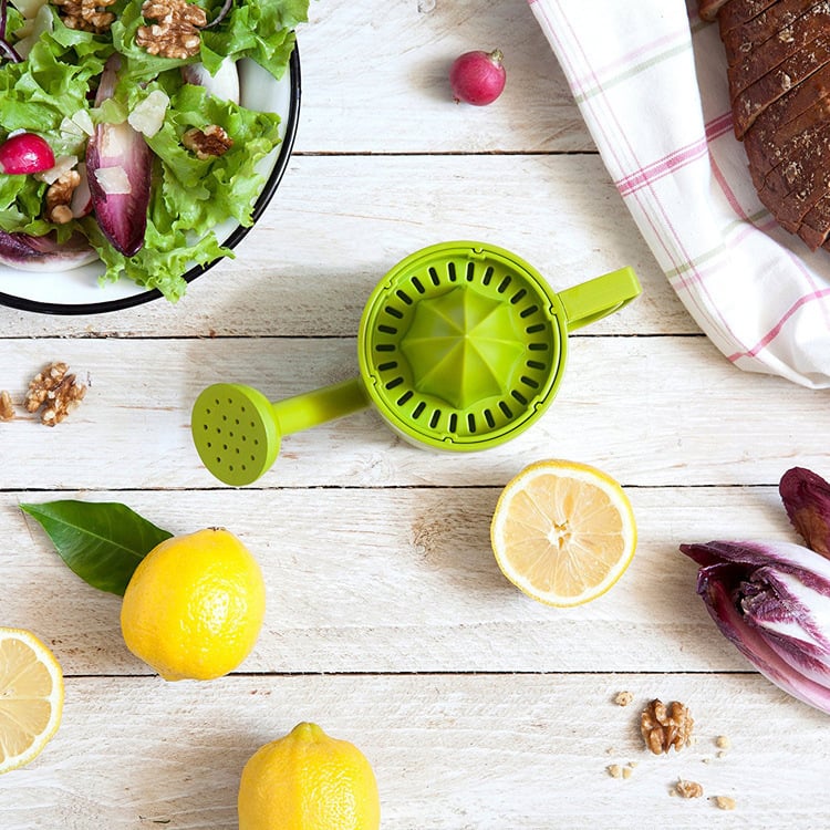 Discover the Lemoniere Original Watering Can Shaped Manual Hand Juicer, a delightful addition to your kitchen that combines style and functionality. Crafted from durable, food-grade ABS plastic, this juicer is not only practical but also aesthetically pleasing with its charming green hue. With the capacity to hold 8 ounces of juice, the Lemoniere makes juicing effortless. Simply place a half of your favorite citrus fruit—be it lemon, orange, or grapefruit—on the pointed lid and twist to extract every last drop of juice. The cleverly designed spout allows for easy pouring, making it perfect for refreshing lemonade, enhancing your salads, or impressing guests at dinner parties.