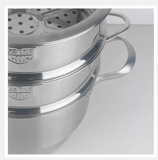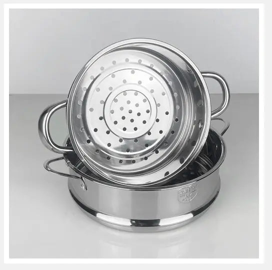 Crafted from high-quality stainless steel, this steamer not only provides durability but also ensures even heat distribution for perfectly cooked meals every time. Its sleek design and double handles make it easy to lift and maneuver, adding convenience to your cooking experience.